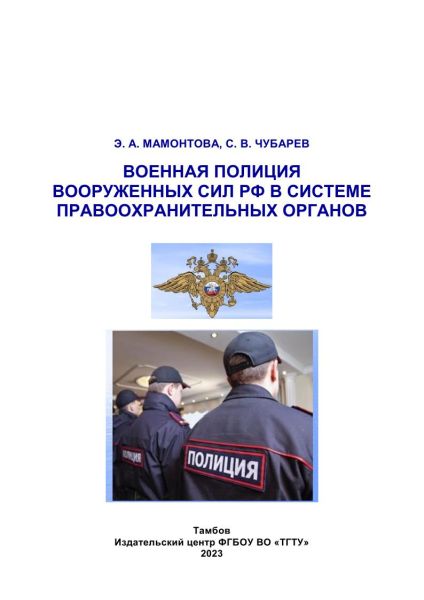 Мамонтова, Э. А. Военная полиция Вооруженных сил РФ в системе правоохранительных органов : учебное пособие / Э. А. Мамонтова, С. В. Чубарев. — Тамбов : Тамбовский государственный технический университет, ЭБС АСВ, 2023. — 80 c. — ISBN 978-5-8265-2677-4. — Текст : электронный // Цифровой образовательный ресурс IPR SMART : [сайт]. — URL: https://www.iprbookshop.ru/141040.html (дата обращения: 03.07.2024). — Режим доступа: для авторизир. пользователей