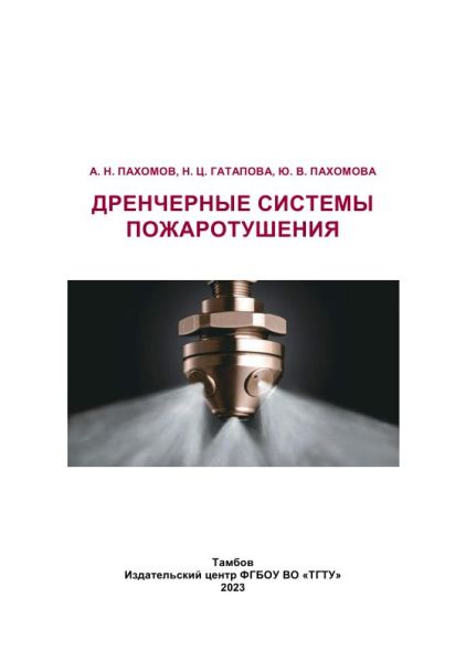 Пахомов, А. Н. Дренчерные системы пожаротушения : учебное пособие / А. Н. Пахомов, Н. Ц. Гатапова, Ю. В. Пахомова. — Тамбов : Тамбовский государственный технический университет, ЭБС АСВ, 2023. — 81 c. — ISBN 978-5-8265-2593-7. — Текст : электронный // Цифровой образовательный ресурс IPR SMART : [сайт]. — URL: https://www.iprbookshop.ru/141042.html (дата обращения: 03.07.2024). — Режим доступа: для авторизир. пользователей