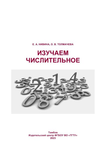 Нивина, Е. А. Изучаем числительное : учебное пособие / Е. А. Нивина, О. В. Толмачева. — Тамбов : Тамбовский государственный технический университет, ЭБС АСВ, 2023. — 81 c. — ISBN 978-5-8265-2674-3. — Текст : электронный // Цифровой образовательный ресурс IPR SMART : [сайт]. — URL: https://www.iprbookshop.ru/141046.html (дата обращения: 04.07.2024). — Режим доступа: для авторизир. пользователей