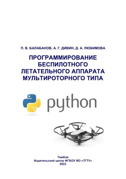 Балабанов, П. В. Программирование беспилотного летательного аппарата мультироторного типа : учебное пособие / П. В. Балабанов, А. Г. Дивин, Д. А. Любимова. — Тамбов : Тамбовский государственный технический университет, ЭБС АСВ, 2023. — 85 c. — ISBN 978-5-8265-2689-7. — Текст : электронный // Цифровой образовательный ресурс IPR SMART : [сайт]. — URL: https://www.iprbookshop.ru/141076.html (дата обращения: 04.07.2024). — Режим доступа: для авторизир. пользователей