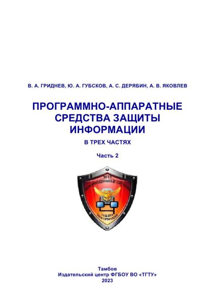 Программно-аппаратные средства защиты информации. В 3 частях. Ч.2 : учебное пособие / В. А. Гриднев, Ю. А. Губсков, А. С. Дерябин, А. В. Яковлев. — Тамбов : Тамбовский государственный технический университет, ЭБС АСВ, 2023. — 79 c. — ISBN 978-5-8265-2464-0, 978-5-8265-2609-5 (ч.2). — Текст : электронный // Цифровой образовательный ресурс IPR SMART : [сайт]. — URL: https://www.iprbookshop.ru/141077.html (дата обращения: 04.07.2024). — Режим доступа: для авторизир. пользователей