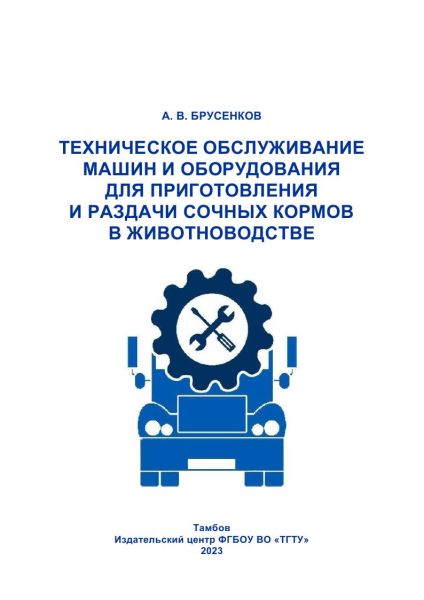 Брусенков, А. В. Техническое обслуживание машин и оборудования для приготовления и раздачи сочных кормов в животноводстве : учебное пособие / А. В. Брусенков. — Тамбов : Тамбовский государственный технический университет, ЭБС АСВ, 2023. — 120 c. — ISBN 978-5-8265-2645-3. — Текст : электронный // Цифровой образовательный ресурс IPR SMART : [сайт]. — URL: https://www.iprbookshop.ru/141093.html (дата обращения: 04.07.2024). — Режим доступа: для авторизир. пользователей