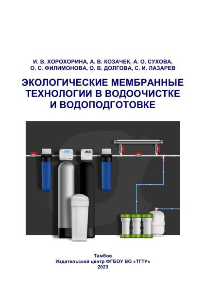 Экологические мембранные технологии в водоочистке и водоподготовке : учебное пособие / И. В. Хорохорина, А. В. Козачек, А. О. Сухова [и др.]. — Тамбов : Тамбовский государственный технический университет, ЭБС АСВ, 2023. — 144 c. — ISBN 978-5-8265-2697-2. — Текст : электронный // Цифровой образовательный ресурс IPR SMART : [сайт]. — URL: https://www.iprbookshop.ru/141100.html (дата обращения: 04.07.2024). — Режим доступа: для авторизир. пользователей
