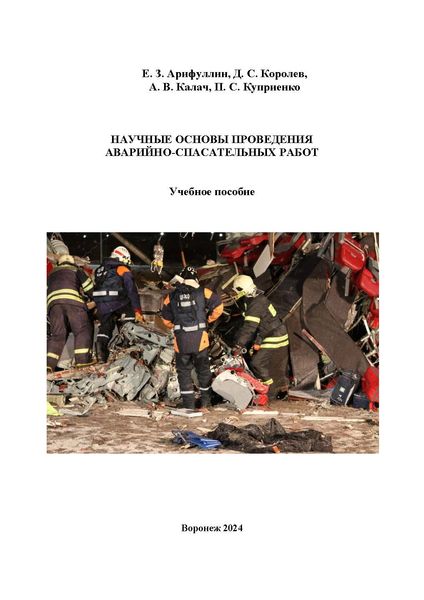 Научные основы проведения аварийно-спасательных работ : учебное пособие / Е. З. Арифуллин, Д. С. Королев, А. В. Калач, П. С. Куприенко. — Воронеж : Воронежский государственный технический университет, ЭБС АСВ, 2024. — 88 c. — ISBN 978-5-7731-1153-5. — Текст : электронный // Цифровой образовательный ресурс IPR SMART : [сайт]. — URL: https://www.iprbookshop.ru/141238.html (дата обращения: 10.07.2024). — Режим доступа: для авторизир. пользователей