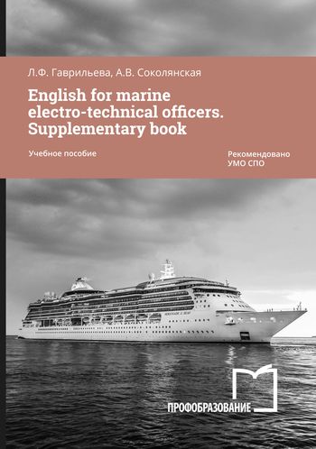 Гаврильева, Л. Ф. English for marine electro-technical officers. Supplementary book : учебное пособие для СПО / Л. Ф. Гаврильева, А. В. Соколянская. — 2-е изд. — Саратов, Москва : Профобразование, Ай Пи Ар Медиа, 2024. — 67 c. — ISBN 978-5-4488-2121-9, 978-5-4497-3233-0. — Текст : электронный // Цифровой образовательный ресурс IPR SMART : [сайт]. — URL: https://www.iprbookshop.ru/141268.html (дата обращения: 11.07.2024). — Режим доступа: для авторизир. пользователей