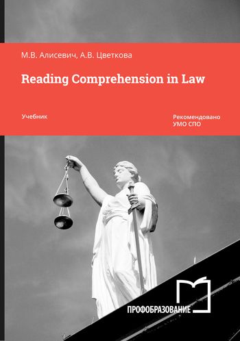 Алисевич, М. В. Reading Comprehension in Law : учебник для СПО / М. В. Алисевич, А. В. Цветкова ; под редакцией М. В. Алисевич. — 2-е изд. — Саратов, Москва : Профобразование, Ай Пи Ар Медиа, 2024. — 174 c. — ISBN 978-5-4488-2125-7, 978-5-4497-3239-2. — Текст : электронный // Цифровой образовательный ресурс IPR SMART : [сайт]. — URL: https://www.iprbookshop.ru/141272.html (дата обращения: 11.07.2024). — Режим доступа: для авторизир. пользователей