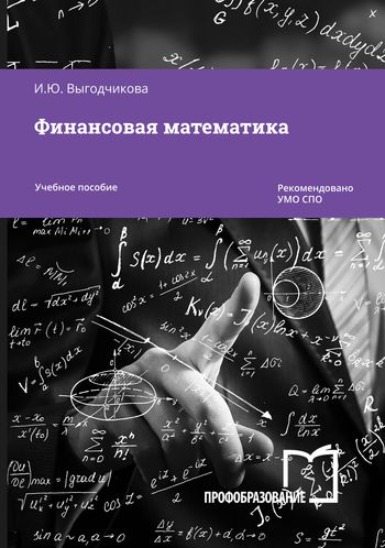 Выгодчикова, И. Ю. Финансовая математика : учебное пособие для СПО / И. Ю. Выгодчикова. — 2-е изд. — Саратов, Москва : Профобразование, Ай Пи Ар Медиа, 2024. — 70 c. — ISBN 978-5-4488-2126-4, 978-5-4497-3245-3. — Текст : электронный // Цифровой образовательный ресурс IPR SMART : [сайт]. — URL: https://www.iprbookshop.ru/141287.html (дата обращения: 11.07.2024). — Режим доступа: для авторизир. пользователей