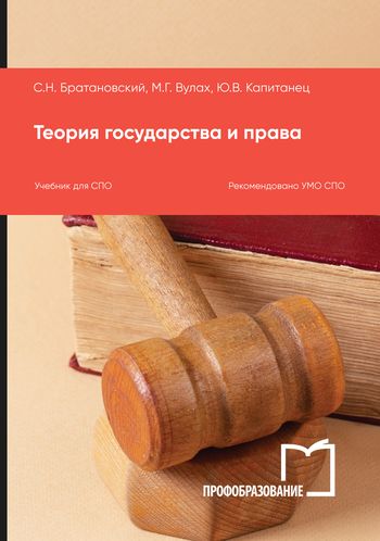Братановский, С. Н. Теория государства и права : учебник для СПО / С. Н. Братановский, М. Г. Вулах, Ю. В. Капитанец. — Саратов, Москва : Профобразование, Ай Пи Ар Медиа, 2024. — 255 c. — ISBN 978-5-4488-2105-9, 978-5-4497-3195-1. — Текст : электронный // Цифровой образовательный ресурс IPR SMART : [сайт]. — URL: https://www.iprbookshop.ru/141352.html (дата обращения: 13.08.2024). — Режим доступа: для авторизир. пользователей