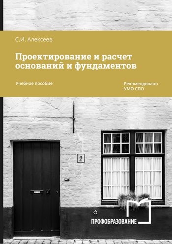 Алексеев, С. И. Проектирование и расчет оснований и фундаментов : учебное пособие для СПО / С. И. Алексеев. — 2-е изд. — Саратов, Москва : Профобразование, Ай Пи Ар Медиа, 2024. — 220 c. — ISBN 978-5-4488-2144-8, 978-5-4497-3347-4. — Текст : электронный // Цифровой образовательный ресурс IPR SMART : [сайт]. — URL: https://www.iprbookshop.ru/141481.html (дата обращения: 19.07.2024). — Режим доступа: для авторизир. пользователей