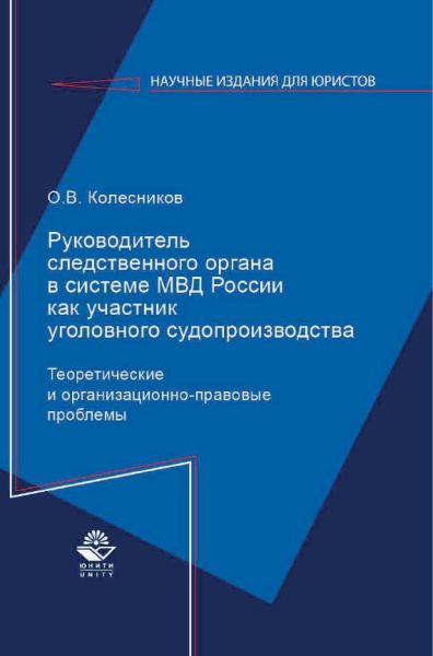 Колесников, О. В. Руководитель следственного органа в системе МВД России как участник уголовного судопроизводств : монография / О. В. Колесников. — Москва : ЮНИТИ-ДАНА, 2023. — 159 c. — ISBN 978-5-238-02300-7. — Текст : электронный // Цифровой образовательный ресурс IPR SMART : [сайт]. — URL: https://www.iprbookshop.ru/141639.html (дата обращения: 23.07.2024). — Режим доступа: для авторизир. пользователей