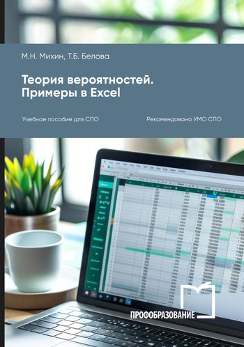 Михин М.Н. Теория вероятностей. Примеры в Excel [Электронный ресурс]: учебное пособие для СПО/ Михин М.Н., Белова Т.Б.— Электрон. текстовые данные.— Саратов, Москва: Профобразование, Ай Пи Ар Медиа, 2024.— 152 c.— Режим доступа: https://ipr-smart.ru/141698.— IPR SMART, по паролю
