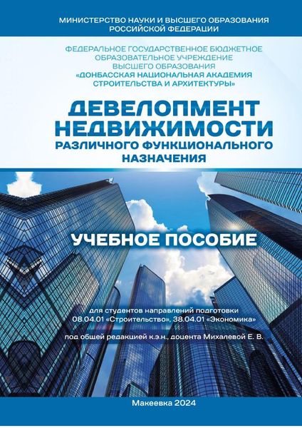 Девелопмент недвижимости различного функционального назначения : учебное пособие для студентов направлений подготовки 08.04.01 «Строительство», 38.04.01 «Экономика» / Е. В. Михалева, М. А. Гракова, В. Н. Ращупкина [и др.] ; под редакцией Е. В. Михалевой. — Макеевка : Донбасская национальная академия строительства и архитектуры, ЭБС АСВ, 2024. — 421 c. — Текст : электронный // Цифровой образовательный ресурс IPR SMART : [сайт]. — URL: https://www.iprbookshop.ru/141705.html (дата обращения: 25.07.2024). — Режим доступа: для авторизир. пользователей
