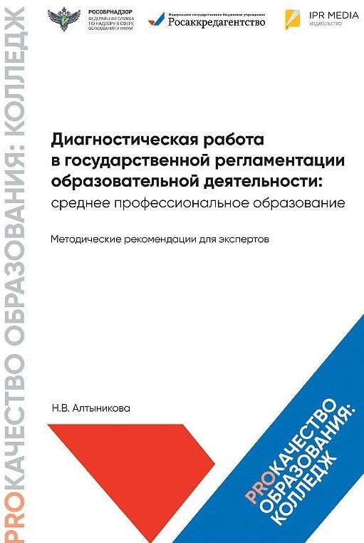 Алтыникова, Н. В. Диагностическая работа в государственной регламентации образовательной деятельности: среднее профессиональное образование. Методические рекомендации для экспертов / Н. В. Алтыникова. — Москва : Ай Пи Ар Медиа, 2024. — 42 c. — ISBN 978-5-4497-3285-9. — Текст : электронный // Цифровой образовательный ресурс IPR SMART : [сайт]. — URL: https://www.iprbookshop.ru/141740.html (дата обращения: 26.07.2024). — Режим доступа: для авторизир. пользователей