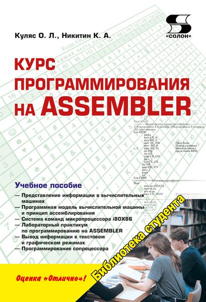 Куляс, О. Л. Курс программирования на Assembler : учебное пособие / О. Л. Куляс, К. А. Никитин. — Москва : СОЛОН-Пресс, 2021. — 220 c. — ISBN 978-5-91359-245-3. — Текст : электронный // Цифровой образовательный ресурс IPR SMART : [сайт]. — URL: https://www.iprbookshop.ru/141865.html (дата обращения: 01.08.2024). — Режим доступа: для авторизир. пользователей