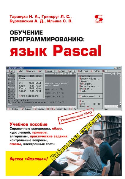 Обучение программированию: язык Pascal / Н. А. Тарануха, Л. С. Гринкруг, А. Д. Бурменский, С. В. Ильина. — Москва : СОЛОН-Пресс, 2021. — 384 c. — ISBN 978-5-91359-050-3. — Текст : электронный // Цифровой образовательный ресурс IPR SMART : [сайт]. — URL: https://www.iprbookshop.ru/141870.html (дата обращения: 01.08.2024). — Режим доступа: для авторизир. пользователей
