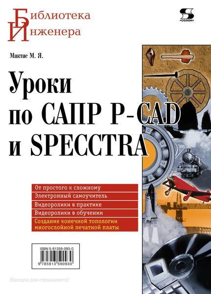 Мактас, М. Я. Уроки по САПР P-CAD и SPECCTRA / М. Я. Мактас. — Москва : СОЛОН-Пресс, 2021. — 224 c. — ISBN 978-5-91359-093-0. — Текст : электронный // Цифровой образовательный ресурс IPR SMART : [сайт]. — URL: https://www.iprbookshop.ru/141938.html (дата обращения: 01.08.2024). — Режим доступа: для авторизир. пользователей