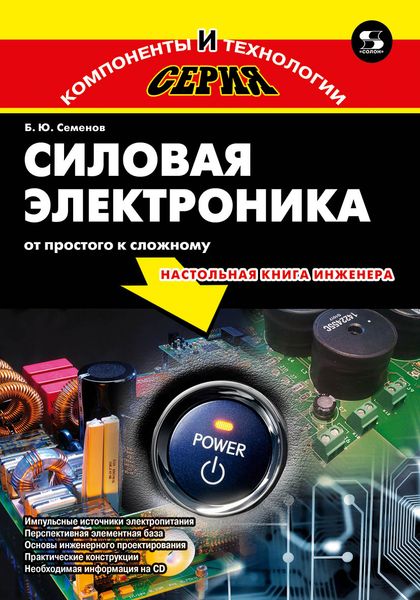 Силовая электроника – стремительно развивающееся направление техники, целью которого является снижение масс и габаритов устройств питания электронной аппаратуры и электродвигателей. Сегодня уже невозможно представить компьютер, видеокамеру, DVD-проигрыватель, телевизор без компактного и надежного импульсного источника. К сожалению, в последние годы наметился острый дефицит литературы на эту тему. Второе издание книги в значительной степени переработано и дополнено. Доступным языком рассказывается об основах проектирования импульсных устройств электропитания, о перспективной элементной базе, особенностях ее применения и оптимальном выборе, приведены практические конструкции. Подробно рассказано о «трудных вопросах» и «подводных камнях» схемотехники. Затронуты также нетрадиционные направления, как, например, создания высокочастотных балластов для ламп дневного света и электронных корректоров коэффициента мощности. Книга будет полезна специалистам-разработчикам силовой техники, студентам вузов, специалистам-ремонтникам и радиолюбителям. На прилагаемом к книге виртуальном компакт-диске помещена техническая документация на силовые элементы (транзисторы и диоды), микросхемы управления различными импульсными преобразователями, магнитопроводы моточных изделий, бесплатное программное обеспечение для автоматизированной разработки. Кроме этого, имеются печатные платы в формате Sprint Layout 3.0 ко всем практическим конструкциям.