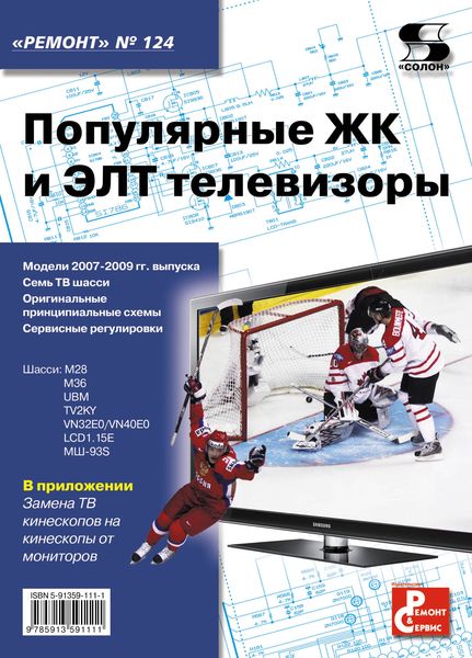 В очередной книге серии «Ремонт» описаны самые популярные модели современных телевизоров различных компаний, в том числе и отечественных, и торговых марок производства 2007-2009 гг. Рассмотрены семь телевизионных шасси, в том числе, пять шасси на основе ЭЛТ и два шасси на основе ЖК панелей. На этих шасси производятся более 80 моделей телевизоров с диагоналями экрана от 14 до 29 дюймов. По каждой модели приводятся блок-схема, принципиальная электрическая схема, осциллограммы сигналов в контрольных точках, подробно описывается работа всех ее составных частей, порядок регулировки шасси в сервисном режиме. Практическая ценность книги определяется подробным описанием типовых неисправностей и описанием методики их поиска и устранения. Книга предназначена для широкого круга специалистов, занимающихся ремонтом телевизионной техники, студентов вузов и учащихся колледжей, а также для радиолюбителей, интересующихся этой темой.