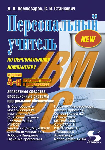 В «Персональном учителе» собраны самые важные и интересные темы, часто составляющие предмет обсуждений в пользовательской среде. Описываются современные операционные системы, популярные офисные и вспомогательные программы. Важное место в книге отведено вопросам использования Интернета. Книга содержит также множество материалов по устройству и принципам работы персонального компьютера и его компонентов: «железа» и «софта». Читатель найдет в книге ответы на многие, порой сложные вопросы эксплуатации компьютера. Сжатое и в тоже время подробное и энергичное изложение выгодно отличают книгу от других изданий на эту тематику. В предлагаемом четвертом издании: отражено современное состояние в области аппаратных средств компьютера, соответствующие разделы основательно переработаны; рассмотрены самые последние версии программ, расширен раздел офисных программ; переработаны главы по MS-DOS и Windows 95/98, подробно рассмотрены особенности и важные вопросы настройки Windows XP. Системы Windows получили исчерпывающее описание; добавлены материалы по антивирусной теме, описаны новые вирусные технологии; добавлены материалы по BIOS Setup. Книга предназначена для широкого круга пользователей PC. Может также использоваться в качестве пособия для компьютерных курсов начального и продвинутого уровней.