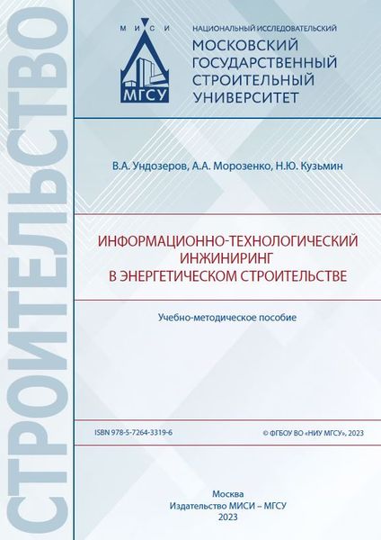 Ундозеров, В. А. Информационно-технологический инжиниринг в энергетическом строительстве : учебно-методическое пособие / В. А. Ундозеров, А. А. Морозенко, Н. Ю. Кузьмин. — Москва : МИСИ-МГСУ, ЭБС АСВ, 2023. — 74 c. — ISBN 978-5-7264-3319-6. — Текст : электронный // Цифровой образовательный ресурс IPR SMART : [сайт]. — URL: https://www.iprbookshop.ru/142176.html (дата обращения: 06.08.2024). — Режим доступа: для авторизир. пользователей