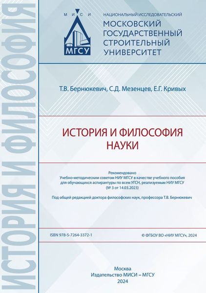 Бернюкевич, Т. В. История и философия науки : учебное пособие для обучающихся аспирантуры по всем УГСН, реализуемым НИУ МГСУ / Т. В. Бернюкевич, С. Д. Мезенцев, Е. Г. Кривых ; Т. В. Бернюкевич. — Москва : МИСИ-МГСУ, ЭБС АСВ, 2024. — 66 c. — ISBN 978-5-7264-3372-1. — Текст : электронный // Цифровой образовательный ресурс IPR SMART : [сайт]. — URL: https://www.iprbookshop.ru/142177.html (дата обращения: 06.08.2024). — Режим доступа: для авторизир. пользователей