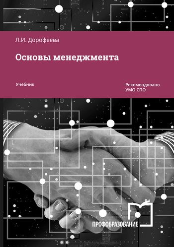 Дорофеева, Л. И. Основы менеджмента : учебник для СПО / Л. И. Дорофеева. — 2-е изд. — Саратов, Москва : Профобразование, Ай Пи Ар Медиа, 2024. — 494 c. — ISBN 978-5-4488-2182-0, 978-5-4497-3447-1. — Текст : электронный // Цифровой образовательный ресурс IPR SMART : [сайт]. — URL: https://www.iprbookshop.ru/142226.html (дата обращения: 08.08.2024). — Режим доступа: для авторизир. пользователей