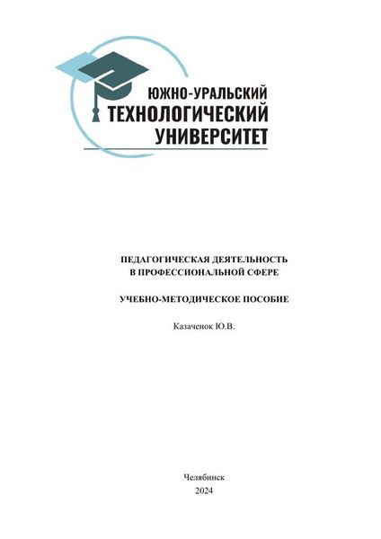 Учебно-методическое пособие «Педагогическая деятельность в профессиональной сфере» представляет собой комплексный ресурс, охватывающий основные аспекты педагогической работы в профессиональной области. Пособие разработано для студентов и специалистов, обучающихся или работающих в сфере образования, требующей специфических знаний и навыков. В пособии представлены ключевые темы, такие как теоретические основы педагогики, методы обучения и воспитания в профессиональной среде, психологические аспекты обучения взрослых, а также методы оценки эффективности педагогической деятельности. Каждая глава пособия предлагает читателю систематизированное изложение теоретических аспектов дисциплины. Учебно-методическое пособие «Педагогическая деятельность в профессиональной сфере» является ресурсом как для студентов, изучающих педагогическую специальность, так и для практикующих педагогов, желающих систематизировать и углубить свои знания в области педагогической работы в профессиональной среде. Подготовлено на кафедре лингвистики и гуманитарных дисциплин ОУ ВО «Южно-Уральский технологический университет».