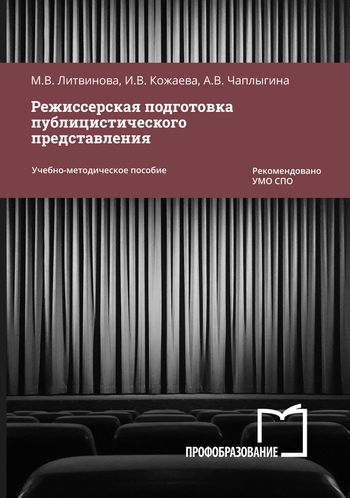 Литвинова, М. В. Режиссерская подготовка публицистического представления : учебно-методическое пособие для СПО / М. В. Литвинова, И. В. Кожаева, А. В. Чаплыгина. — 2-е изд. — Саратов : Профобразование, 2024. — 110 c. — ISBN 978-5-4488-2217-9. — Текст : электронный // Цифровой образовательный ресурс IPR SMART : [сайт]. — URL: https://www.iprbookshop.ru/142591.html (дата обращения: 06.03.2025). — Режим доступа: для авторизир. пользователей