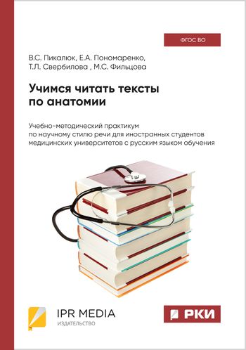 Учимся читать тексты по анатомии : учебно-методический практикум по научному стилю речи для иностранных студентов медицинских университетов с русским языком обучения / В. С. Пикалюк, Е. А. Пономаренко, Т. Л. Свербилова, М. С. Фильцова. — Москва : Ай Пи Ар Медиа, 2025. — 142 c. — ISBN 978-5-4497-4882-9. — Текст : электронный // Цифровой образовательный ресурс IPR SMART : [сайт]. — URL: https://www.iprbookshop.ru/155123.html (дата обращения: 09.10.2025). — Режим доступа: для авторизир. пользователей