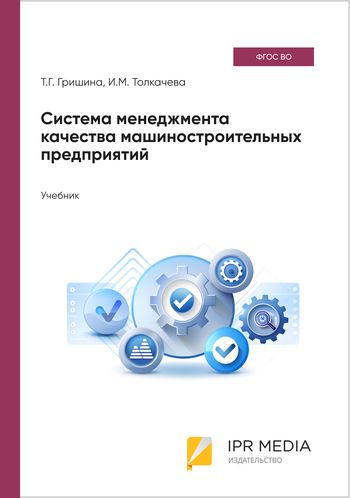 Гришина, Т. Г. Система менеджмента качества машиностроительных предприятий : учебник / Т. Г. Гришина, И. М. Толкачева. — Москва : Ай Пи Ар Медиа, 2024. — 280 c. — ISBN 978-5-4497-3488-4. — Текст : электронный // Цифровой образовательный ресурс IPR SMART : [сайт]. — URL: https://www.iprbookshop.ru/142897.html (дата обращения: 06.09.2024). — Режим доступа: для авторизир. пользователей