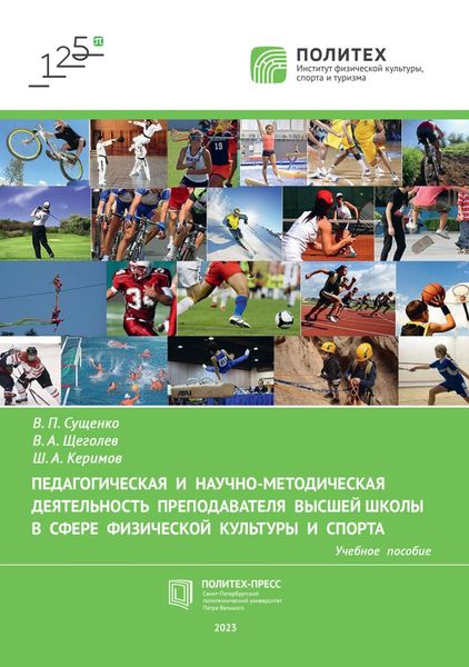 Сущенко, В. П. Педагогическая и научно-методическая деятельность преподавателя высшей школы в сфере физической культуры и спорта : учебное пособие / В. П. Сущенко, В. А. Щеголев, Ш. А. Керимов. — Санкт-Петербург : Санкт-Петербургский политехнический университет Петра Великого, 2023. — 248 c. — ISBN 978-5-7422-8278-5. — Текст : электронный // Цифровой образовательный ресурс IPR SMART : [сайт]. — URL: https://www.iprbookshop.ru/142998.html (дата обращения: 10.09.2024). — Режим доступа: для авторизир. пользователей