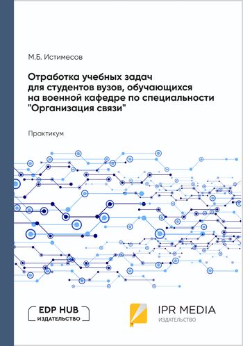 Истимесов, М. Б. Отработка учебных задач для студентов вузов, обучающихся на военной кафедре по специальности «Организация связи» : практикум / М. Б. Истимесов. — Алматы, Москва : EDP Hub (Идипи Хаб), Ай Пи Ар Медиа, 2024. — 137 c. — ISBN 978-5-4497-3632-1. — Текст : электронный // Цифровой образовательный ресурс IPR SMART : [сайт]. — URL: https://www.iprbookshop.ru/143335.html (дата обращения: 19.09.2024). — Режим доступа: для авторизир. пользователей