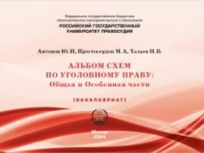 Антонов, Ю. И. Альбом схем по уголовному праву: общая и особенная части / Ю. И. Антонов, М. А. Простосердов, И. В. Талаев ; под редакцией И. В. Талаева. — 2-е изд. — Москва : Российский государственный университет правосудия, 2024. — 196 c. — ISBN 978-5-00209-156-0. — Текст : электронный // Цифровой образовательный ресурс IPR SMART : [сайт]. — URL: https://www.iprbookshop.ru/143458.html (дата обращения: 21.09.2024). — Режим доступа: для авторизир. пользователей