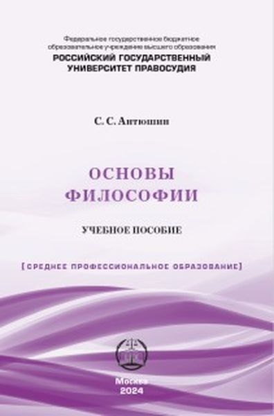 Антюшин, С. С. Основы философии : учебное пособие / С. С. Антюшин. — 2-е изд. — Москва : Российский государственный университет правосудия, 2024. — 422 c. — ISBN 978-5-00209-115-7. — Текст : электронный // Цифровой образовательный ресурс IPR SMART : [сайт]. — URL: https://www.iprbookshop.ru/143472.html (дата обращения: 21.09.2024). — Режим доступа: для авторизир. пользователей