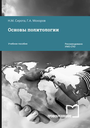 Сирота, Н. М. Основы политологии : учебное пособие для СПО / Н. М. Сирота, Г. А. Мохоров. — 2-е изд. — Саратов, Москва : Профобразование, Ай Пи Ар Медиа, 2024. — 173 c. — ISBN 978-5-4488-2249-0, 978-5-4497-3682-6. — Текст : электронный // Цифровой образовательный ресурс IPR SMART : [сайт]. — URL: https://www.iprbookshop.ru/143679.html (дата обращения: 24.09.2024). — Режим доступа: для авторизир. пользователей