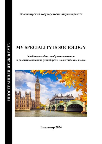 Новикова, Л. В. My Speciality is Sociology : учебное пособие по обучению чтению и развитию навыков устной речи на английском языке / Л. В. Новикова. — Владимир : Издательство Владимирского государственного университета, 2024. — 203 c. — ISBN 978-5-9984-1830-3. — Текст : электронный // Цифровой образовательный ресурс IPR SMART : [сайт]. — URL: https://www.iprbookshop.ru/143809.html (дата обращения: 01.10.2024). — Режим доступа: для авторизир. пользователей
