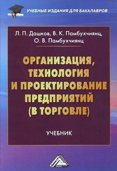 Дашков, Л. П. Организация, технология и проектирование предприятий (в торговле) : учебник для бакалавров / Л. П. Дашков, В. К. Памбухчиянц, О. В. Памбухчиянц. — 16-е изд. — Москва : Дашков и К, 2025. — 456 c. — ISBN 978-5-394-05994-0. — Текст : электронный // Цифровой образовательный ресурс IPR SMART : [сайт]. — URL: https://www.iprbookshop.ru/152485.html (дата обращения: 11.07.2025). — Режим доступа: для авторизир. пользователей