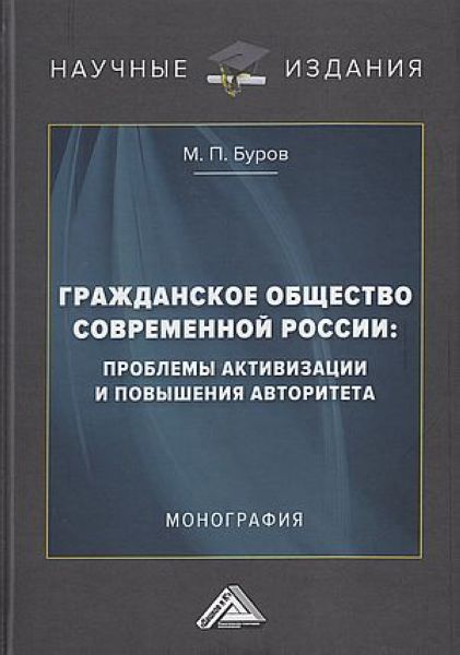 Буров, М. П. Гражданское общество современной России: проблемы активизации и повышения авторитета : монография / М. П. Буров. — 3-е изд. — Москва : Дашков и К, 2023. — 328 c. — ISBN 978-5-394-05392-4. — Текст : электронный // Цифровой образовательный ресурс IPR SMART : [сайт]. — URL: https://www.iprbookshop.ru/144168.html (дата обращения: 13.10.2024). — Режим доступа: для авторизир. пользователей