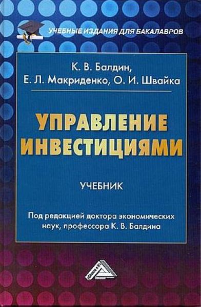 Балдин, К. В. Управление инвестициями : учебник для бакалавров / К. В. Балдин, Е. Л. Макриденко, О. И. Швайка ; под редакцией К. В. Балдина. — 6-е изд. — Москва : Дашков и К, 2024. — 238 c. — ISBN 978-5-394-05589-8. — Текст : электронный // Цифровой образовательный ресурс IPR SMART : [сайт]. — URL: https://www.iprbookshop.ru/144264.html (дата обращения: 12.10.2024). — Режим доступа: для авторизир. пользователей