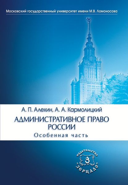 Алехин, А. П. Административное право России. Особенная часть : учебник для вузов / А. П. Алехин, А. А. Кармолицкий ; под редакцией А. А. Алехина. — 4-е изд. — Москва : Зерцало-М, 2019. — 272 c. — ISBN 978-5-94373-445-8. — Текст : электронный // Цифровой образовательный ресурс IPR SMART : [сайт]. — URL: https://www.iprbookshop.ru/144347.html (дата обращения: 15.10.2024). — Режим доступа: для авторизир. пользователей