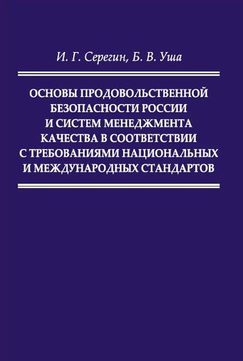 Серегин, И. Г. Основы продовольственной безопасности России и системы менеджмента качества в соответствии с требованиями национальных и международных стандартов : учебное пособие / И. Г. Серегин, Б. В. Уша. — Санкт-Петербург : Квадро, 2024. — 412 c. — ISBN 978-5-906371-10-3. — Текст : электронный // Цифровой образовательный ресурс IPR SMART : [сайт]. — URL: https://www.iprbookshop.ru/144439.html (дата обращения: 18.10.2024). — Режим доступа: для авторизир. пользователей