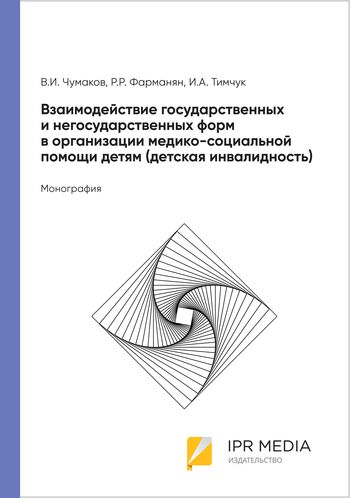 Чумаков, В. И. Взаимодействие государственных и негосударственных форм в организации медико-социальной помощи детям (детская инвалидность) : монография / В. И. Чумаков, Р. Р. Фарманян, И. А. Тимчук. — Москва : Ай Пи Ар Медиа, 2024. — 177 c. — ISBN 978-5-4497-3827-1. — Текст : электронный // Цифровой образовательный ресурс IPR SMART : [сайт]. — URL: https://www.iprbookshop.ru/144513.html (дата обращения: 27.11.2024). — Режим доступа: для авторизир. пользователей