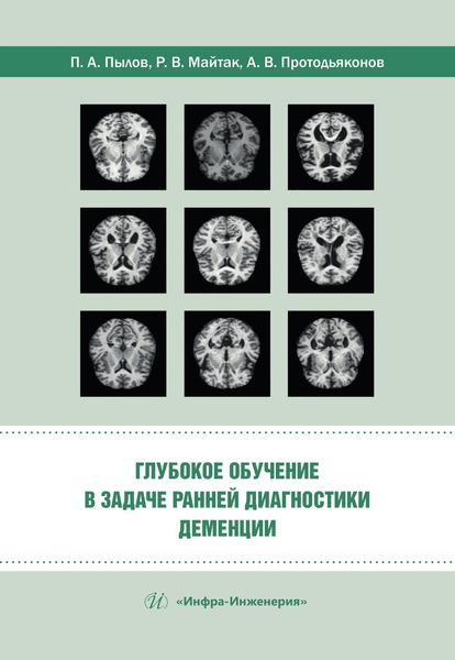 Пылов, П. А. Глубокое обучение в задаче ранней диагностики деменции : монография / П. А. Пылов, Р. В. Майтак, А. В. Протодьяконов. — Москва, Вологда : Инфра-Инженерия, 2024. — 108 c. — ISBN 978-5-9729-2042-6. — Текст : электронный // Цифровой образовательный ресурс IPR SMART : [сайт]. — URL: https://www.iprbookshop.ru/144528.html (дата обращения: 18.10.2024). — Режим доступа: для авторизир. пользователей