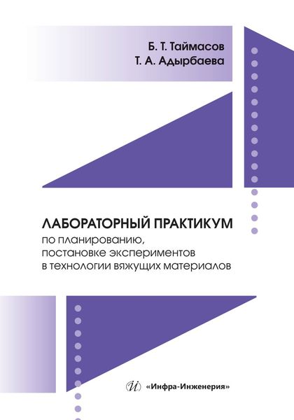 Таймасов, Б. Т. Лабораторный практикум по планированию, постановке экспериментов в технологии вяжущих материалов : учебник / Б. Т. Таймасов, Т. А. Адырбаева. — Москва, Вологда : Инфра-Инженерия, 2024. — 192 c. — ISBN 978-5-9729-1970-3. — Текст : электронный // Цифровой образовательный ресурс IPR SMART : [сайт]. — URL: https://www.iprbookshop.ru/144541.html (дата обращения: 18.10.2024). — Режим доступа: для авторизир. пользователей