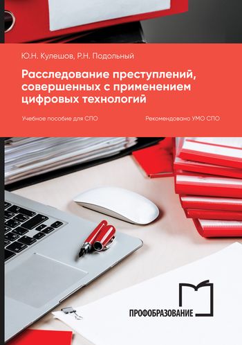 Кулешов Ю.Н. Расследование преступлений, совершённых с применением цифровых технологий : учебное пособие для СПО / Кулешов Ю.Н., Подольный Р.Н.. — Саратов, Москва : Профобразование, Ай Пи Ар Медиа, 2025. — 85 c. — ISBN 978-5-4488-2313-8, 978-5-4497-3843-1. — Текст : электронный // Цифровой образовательный ресурс IPR SMART : [сайт]. — URL: https://www.iprbookshop.ru/144742.html (дата обращения: 17.12.2025). — Режим доступа: для авторизир. пользователей