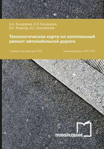 Технологическая карта на капитальный ремонт автомобильной дороги : учебное пособие для СПО / Б. А. Бондарев, А. Б. Бондарев, В. К. Жидков, А. С. Колобанов. — 2-е изд. — Липецк, Саратов : Липецкий государственный технический университет, Профобразование, 2024. — 112 c. — ISBN 978-5-00175-282-0, 978-5-4488-2298-8. — Текст : электронный // Цифровой образовательный ресурс IPR SMART : [сайт]. — URL: https://www.iprbookshop.ru/144764.html (дата обращения: 20.11.2024). — Режим доступа: для авторизир. пользователей
