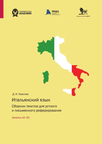 Квасова, Д. И. Итальянский язык : сборник текстов для устного и письменного реферирования. Уровень А2–В1 / Д. И. Квасова. — Москва : Дело, 2024. — 48 c. — ISBN 978-5-85006-587-4. — Текст : электронный // Цифровой образовательный ресурс IPR SMART : [сайт]. — URL: https://www.iprbookshop.ru/145058.html (дата обращения: 31.10.2024). — Режим доступа: для авторизир. пользователей