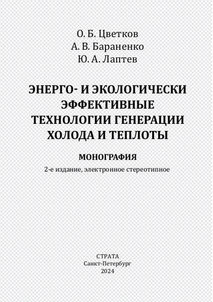 Цветков, О. Б. Энерго- и экологически эффективные технологии генерации холода и теплоты : монография / О. Б. Цветков, А. В. Бараненко, Ю. А. Лаптев. — 2-е изд. — Санкт-Петербург : Страта, 2024. — 292 c. — ISBN 978-5-907800-66-3. — Текст : электронный // Цифровой образовательный ресурс IPR SMART : [сайт]. — URL: https://www.iprbookshop.ru/145237.html (дата обращения: 05.11.2024). — Режим доступа: для авторизир. пользователей
