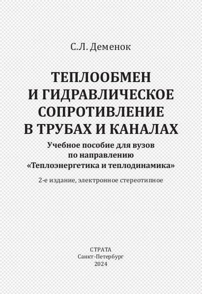 Деменок С.Л. Теплообмен и гидравлическое сопротивление в трубах и каналах : учебное пособие / Деменок С.Л.. — Санкт-Петербург : Страта, 2024. — 306 c. — ISBN 978-5-907800-69-4. — Текст : электронный // Цифровой образовательный ресурс IPR SMART : [сайт]. — URL: https://www.iprbookshop.ru/145240.html (дата обращения: 20.12.2025). — Режим доступа: для авторизир. пользователей
