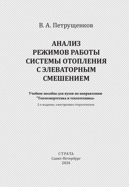 Петрущенков, В. А. Анализ режимов работы системы отопления с элеваторным смешением : учебное пособие / В. А. Петрущенков. — 2-е изд. — Санкт-Петербург : Страта, 2024. — 64 c. — ISBN 978-5-907800-79-3. — Текст : электронный // Цифровой образовательный ресурс IPR SMART : [сайт]. — URL: https://www.iprbookshop.ru/145250.html (дата обращения: 05.11.2024). — Режим доступа: для авторизир. пользователей